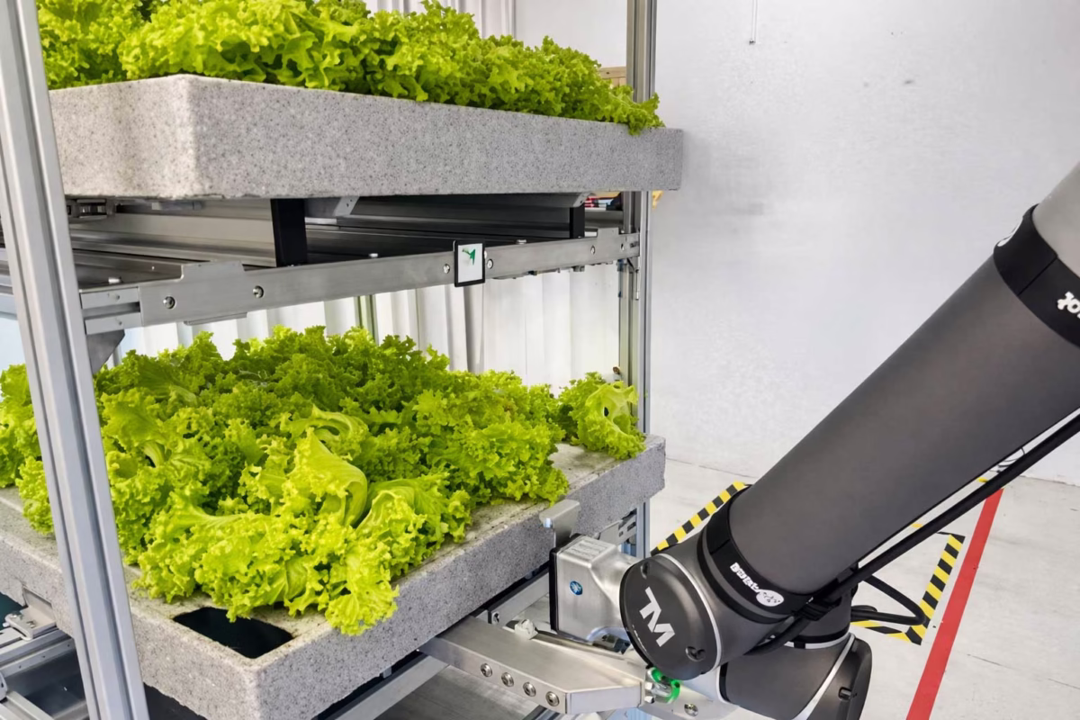 SESTO’s Automated Crop Tray Handling System integrates a robotic arm with the Magnus AMR platform to automate the picking, placement, and transfer of crop trays across vertical farming racks. The solution streamlines crop rotation between seeding, growing, and harvesting zones, ensuring precise handling and optimal use of space in controlled environments.